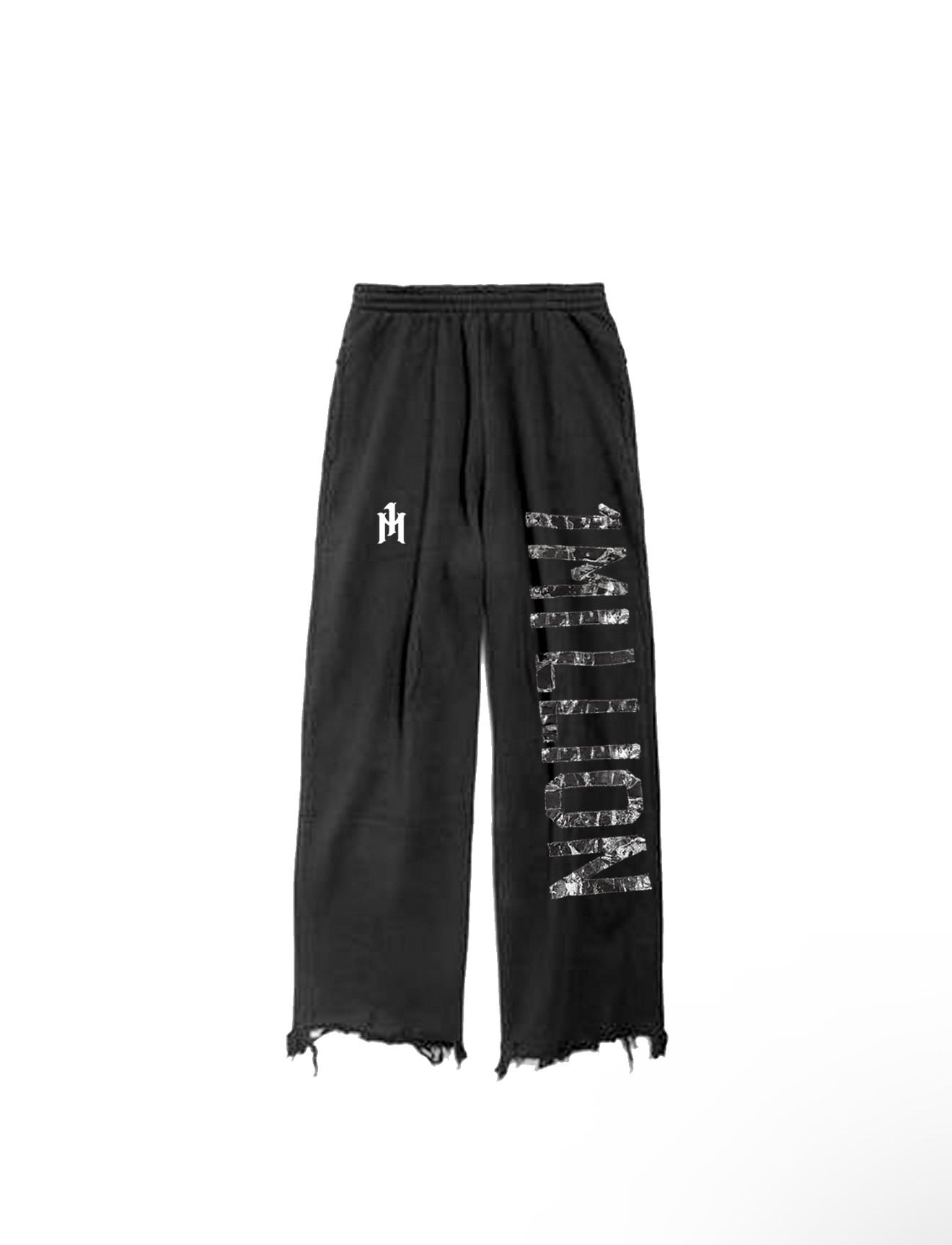 - “1 MILLION” taped-effect graphic on hoodie and pants
